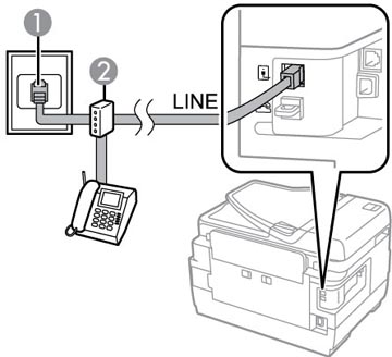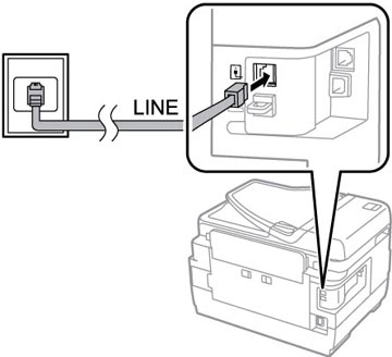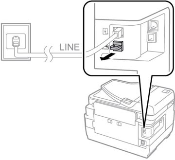 1. Branchez un câble téléphonique à votre prise téléphonique murale et au port LINE de votre produit.