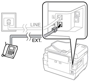 Les téléphones et les répondeurs, quels qu'ils soient, doivent être branchés au port EXT pour que votre produit détecte un appel de télécopie entrant lorsque le téléphone est déclenché. Epson ne peut pas garantir la compatibilité avec la voix sur IP, les systèmes de téléphonie par câble ou les services numériques à fibres optiques tels que FIOS.