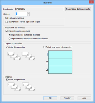 avec le paramètre Copies assemblées, cochez la case Ordre d'impression dans la section Copies