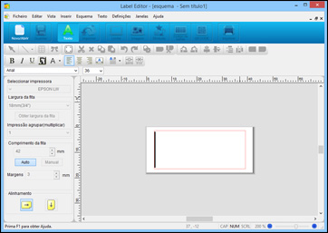 horizontal, e clique OK. Você verá uma etiqueta em branco na
