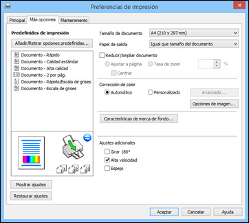tiene cargado en la impresora. Seleccione el tamaño de su documento