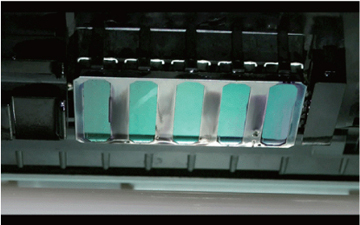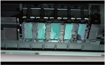 tinta entre los inyectores de los dos cabezales de impresión, tal