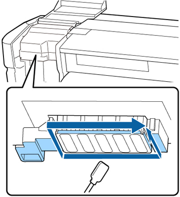 Utilizando el bastoncillo de limpieza, limpie la tinta de las