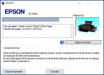 Durante la impresión, verá esta ventana que muestra el progreso del trabajo de impresión. Le permite controlar la impresión.