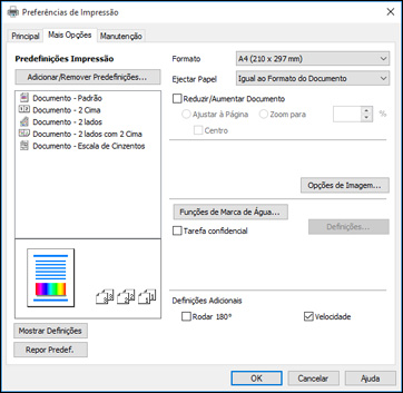 impressão para seus documentos ou fotos na guia Mais opções.