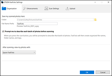 deselect the checkbox, FastFoto uses the default file name prefix