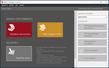 Windows 10: Haga clic en y seleccione ABBYY FineReader 12 Sprint > ABBYY FineReader 12 Sprint.