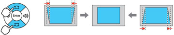 pode usar os botões de keystone (correção de efeito trapézio) do