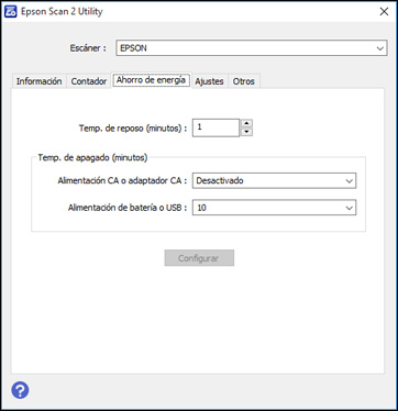 la utilidad Epson Scan 2 Utility para establecer cuánto tiempo
