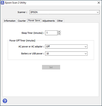 You can use the Epson Scan 2 Utility to change the time period before the scanner enters sleep mode and turns off automatically.