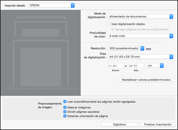 Seleccione los ajustes de escaneo y haga clic en Digitalizar.