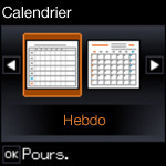 Vous pouvez créer et imprimer une page de calendrier hebdomadaire ou mensuel depuis votre produit.