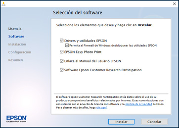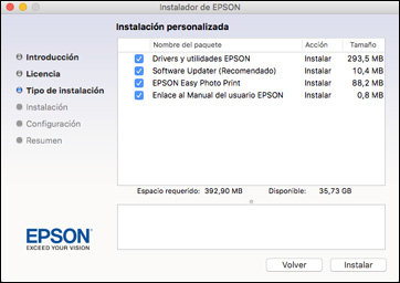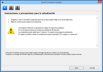 comienzo de la carga de la tinta. Si ejecuta el paquete de