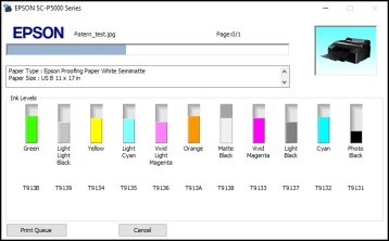 During printing, you see this window showing the progress of your print job. It allows you to control printing and check ink cartridge status.