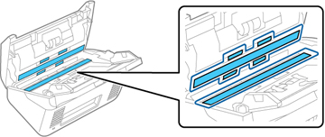 digitalização e os rolamentos dentro da tampa do scanner. Se a