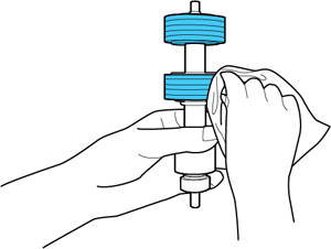 O scanner entra em modo de limpeza de rolo.