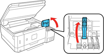3. Open the ink tank cover, then open the cap for the ink tank you are going to fill.