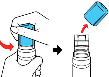 4. Hold the ink bottle upright and slowly turn the bottle cap to remove it.