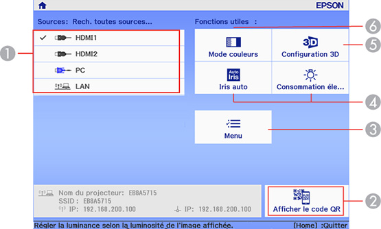 1 Permet de sélectionner la source vidéo que vous souhaitez projeter.