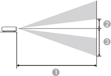 | Taille de l'écran ou de l'image | Distance de projection (1)
