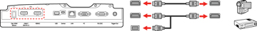 brancher au projecteur à l'aide d'un câble HDMI optionnel. La