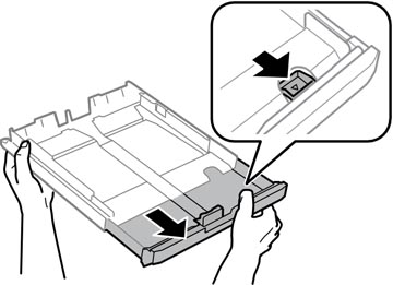 squeeze the tab and extend the paper cassette