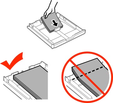 To prevent paper feeding problems, make sure the paper fits beneath the top edges of the guides and do not load too much paper in the cassette.