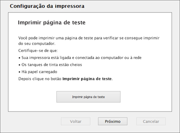 imprima uma página de teste e clique em Próximo (Windows) ou em Continuar (Mac).
