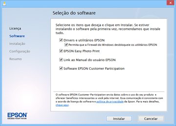 Se você vir um alerta de firewall, clique em Desbloquear ou em Permitir para que o EpsonNet Setup continue.