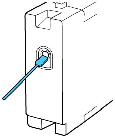 porta de fornecimento usando um bastão de limpeza no kit de