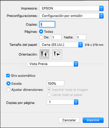 de impresión puede ser diferente, dependiendo de la versión de Mac