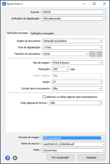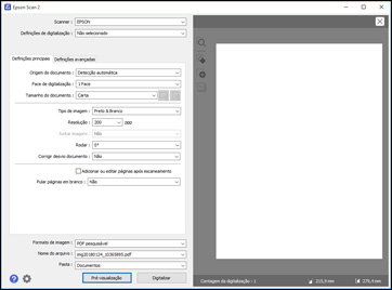 digitalizada em vários formatos de arquivo na pasta Documentos ou