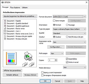 d'impression que vous utilisez dans tous les programmes Windows,