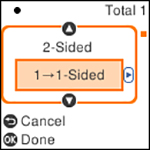 To change the print settings, press the left or right arrow button and select the necessary settings. When you are finished, press the