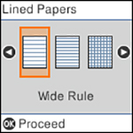 You can print music sheets, wide-rule or narrow-rule notebook paper, and graph paper.