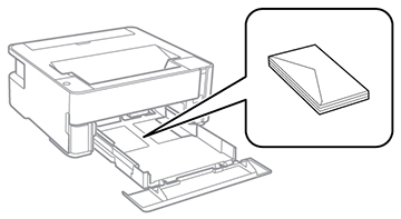 hasta 10 sobres, con la cara imprimible hacia abajo y la solapa