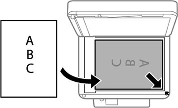 l'original face vers le bas sur la vitre d'exposition du scanner,