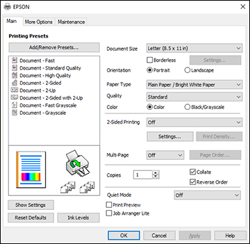 and graphics in black or shades of gray, select the Black/Grayscale setting.