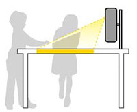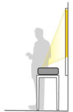 Retroproyección desde una mesa o un carro portátil por detrás de una pantalla translúcida (las funciones interactivas no son compatibles)