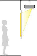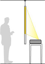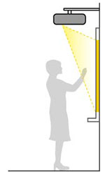 Montado en la pared o el techo para proyectar por detrás de una pantalla translúcida (las funciones interactivas no son compatibles)