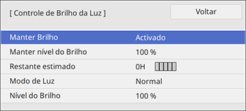 Se ativar a opção Manter Brilho, selecione a configuração