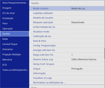 Se quiser ver os menus e mensagens do projetor em outro idioma, você pode mudar a configuração de Língua.