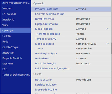 Saída A/V no menu E/S do sinal estiver definida como Durante Projeção, a configuração Ligação