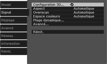 : modifie la plage des zones claires et foncées des images. Etat du signal : affiche le