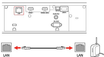 Branchez l'autre extrémité du câble dans le port LAN du projecteur.