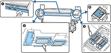 | 2 | Around the print head | Once a month or when you see a message on the LCD screen to perform head maintenance |