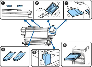 | 5 | Waste ink bottle | When you see a message on the LCD screen to replace the part |