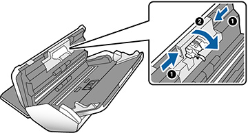 las lengüetas a los lados de la cubierta del rodillo de separación