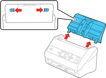 Push apart the latches on the back on the input tray and lift the input tray off of the scanner.