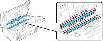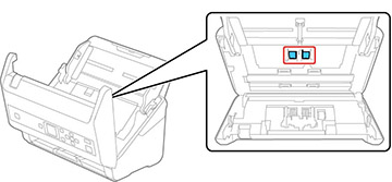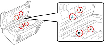numérisation et les rouleaux à l'intérieur du capot du scanner. Si